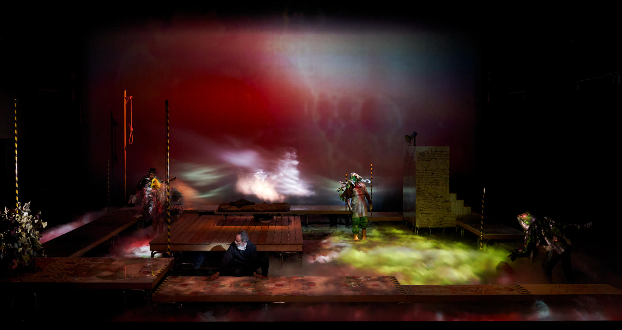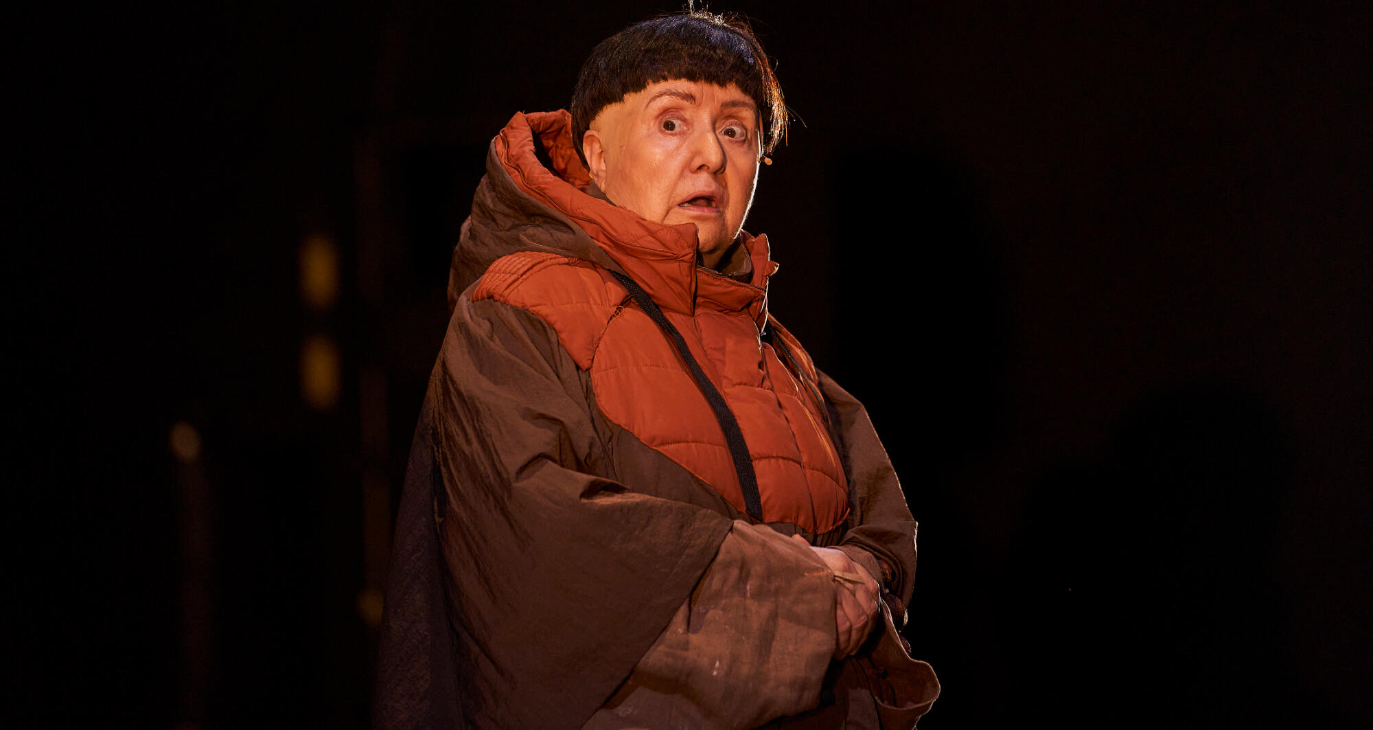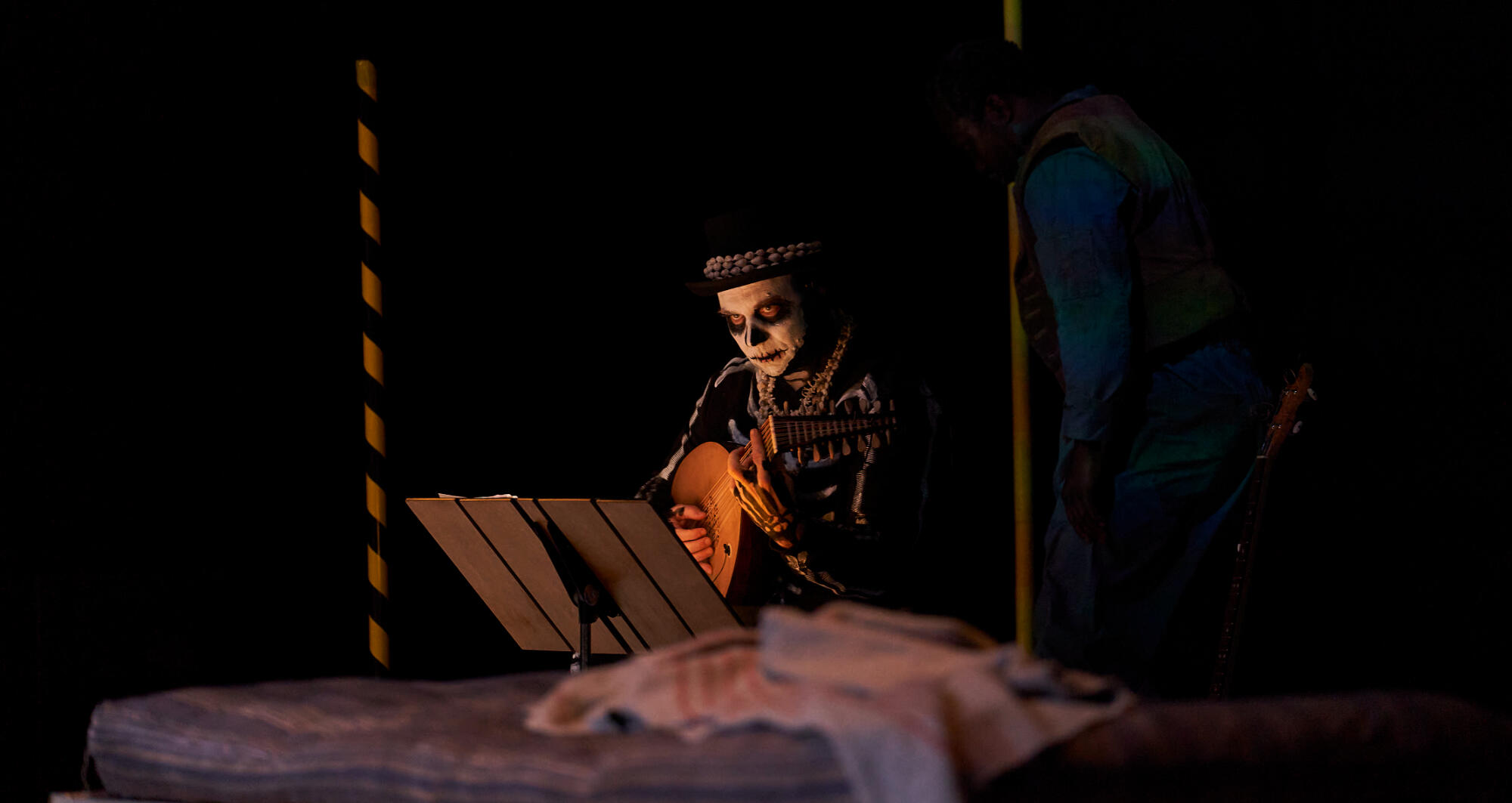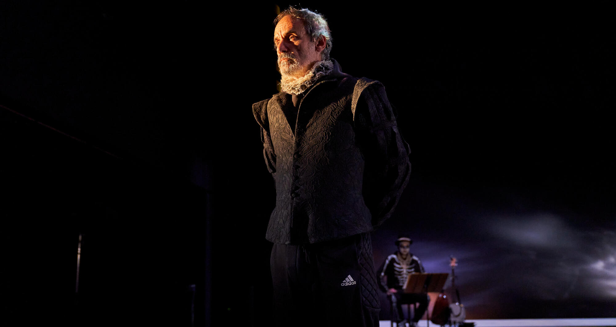 In order to recreate the streets of Brugge in the 16th century, the scenography of this show was designed so that water played a predominant role. Due to ecological responsibility, TNC's commitment to the sustainability and because of the drought we are suffering, we have decided not to fill the stage floor with water and replace its poetic effect with video and smoke. However, and to contribute to the narrative of the play, it has been inevitable to use a minimum quantity of water, which is recycled and reused every day for other uses.