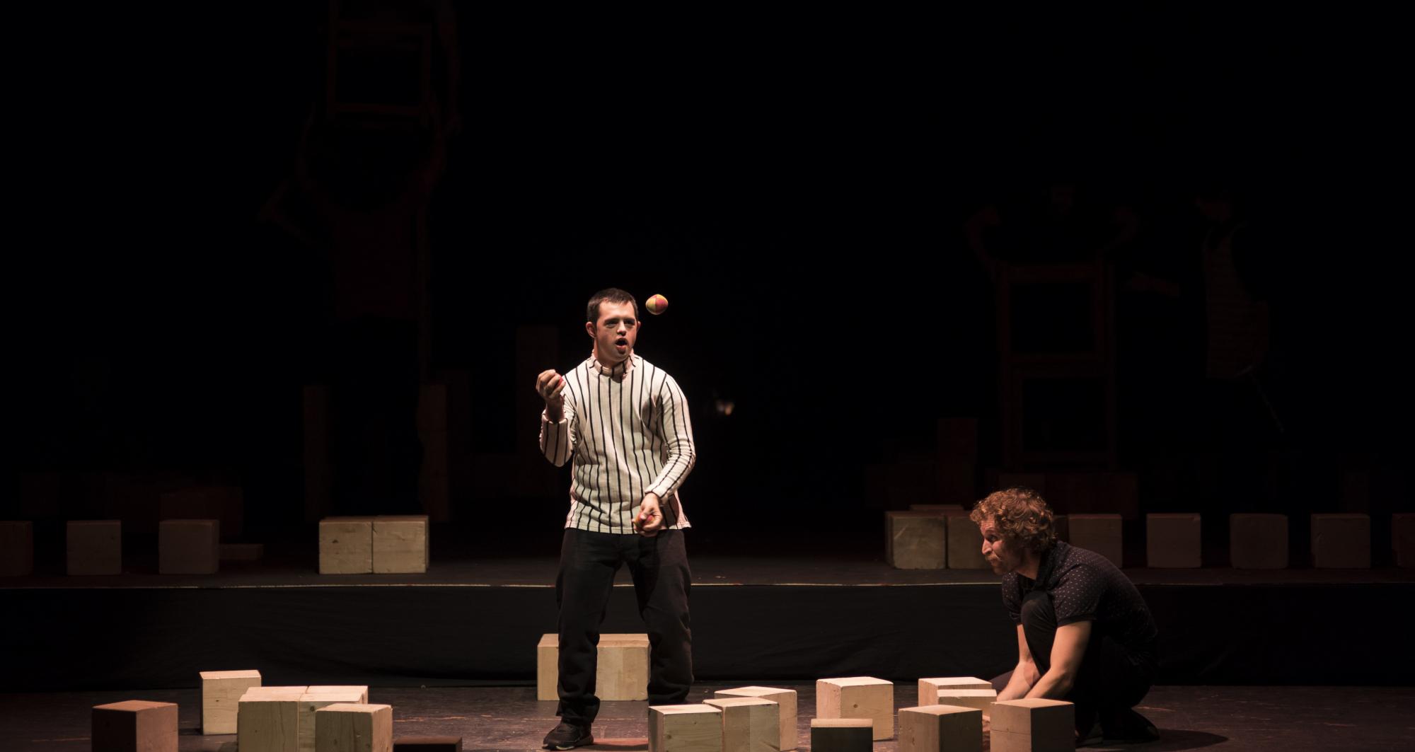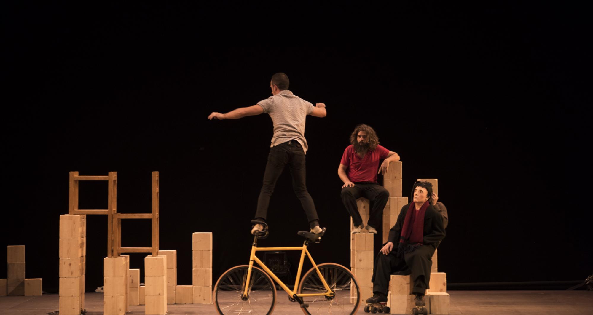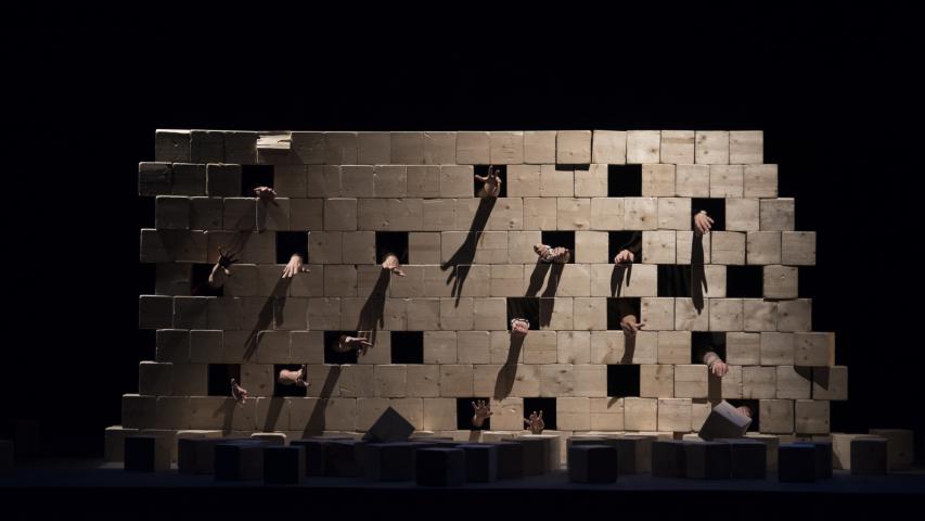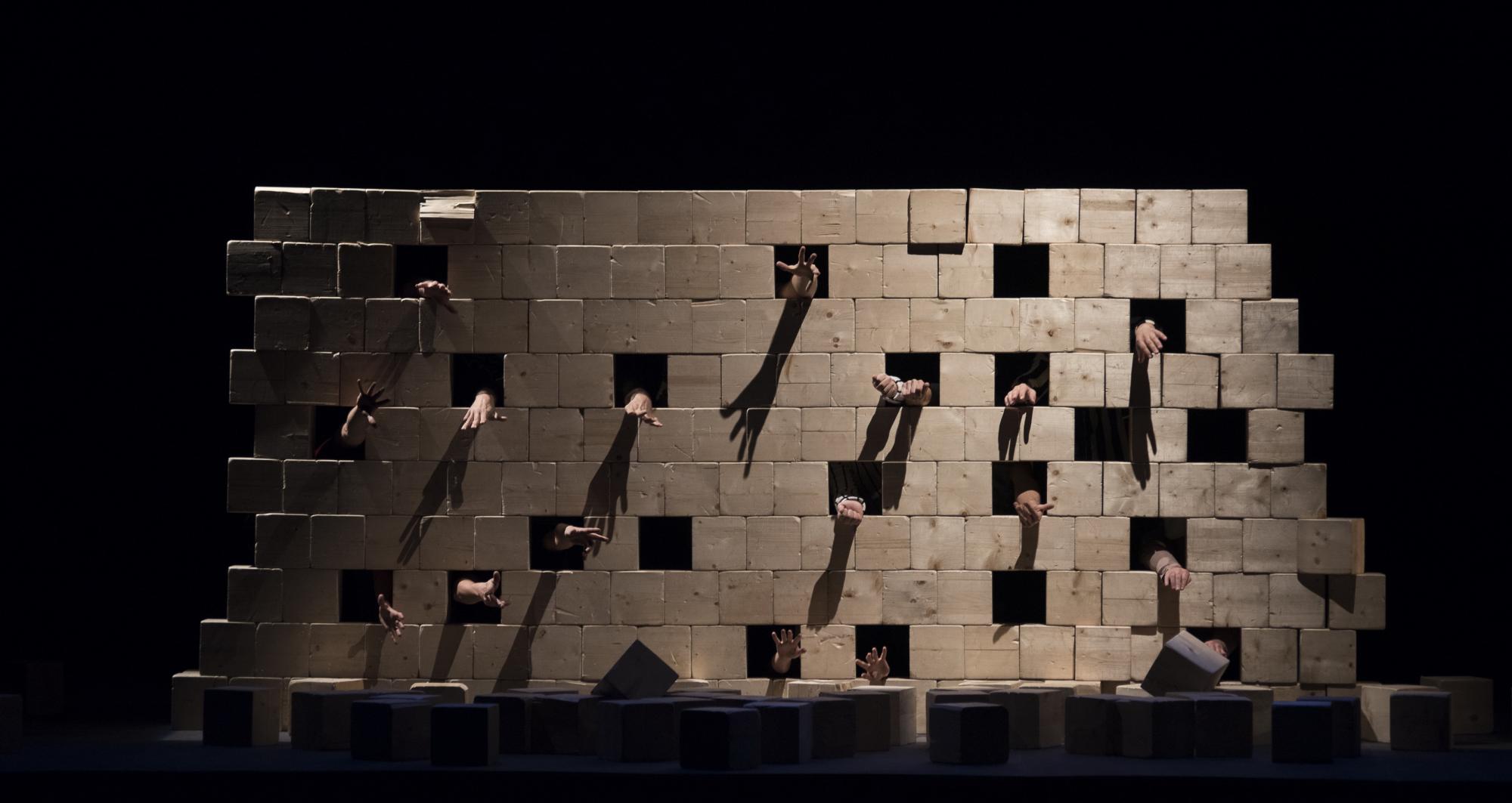 Nine artists on stage, cubes, light, group work and a sentence: "If we walk alone, we go faster; if we walk together, we go further." These are the elements that encapsulate the essence of Mur, a vibrant and poetic circus show in which the impossible constructions drive the artists to work together to achieve a common goal: deconstruct a wall to build a new world in which highly heterogeneous people can live in harmony.