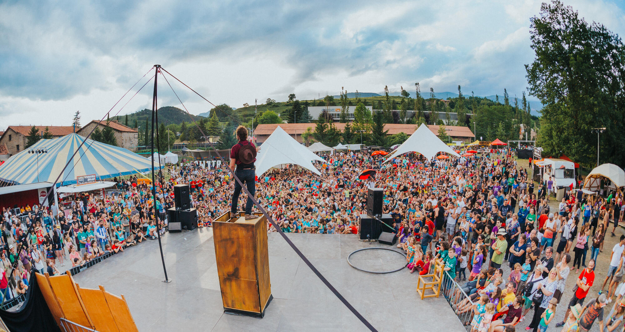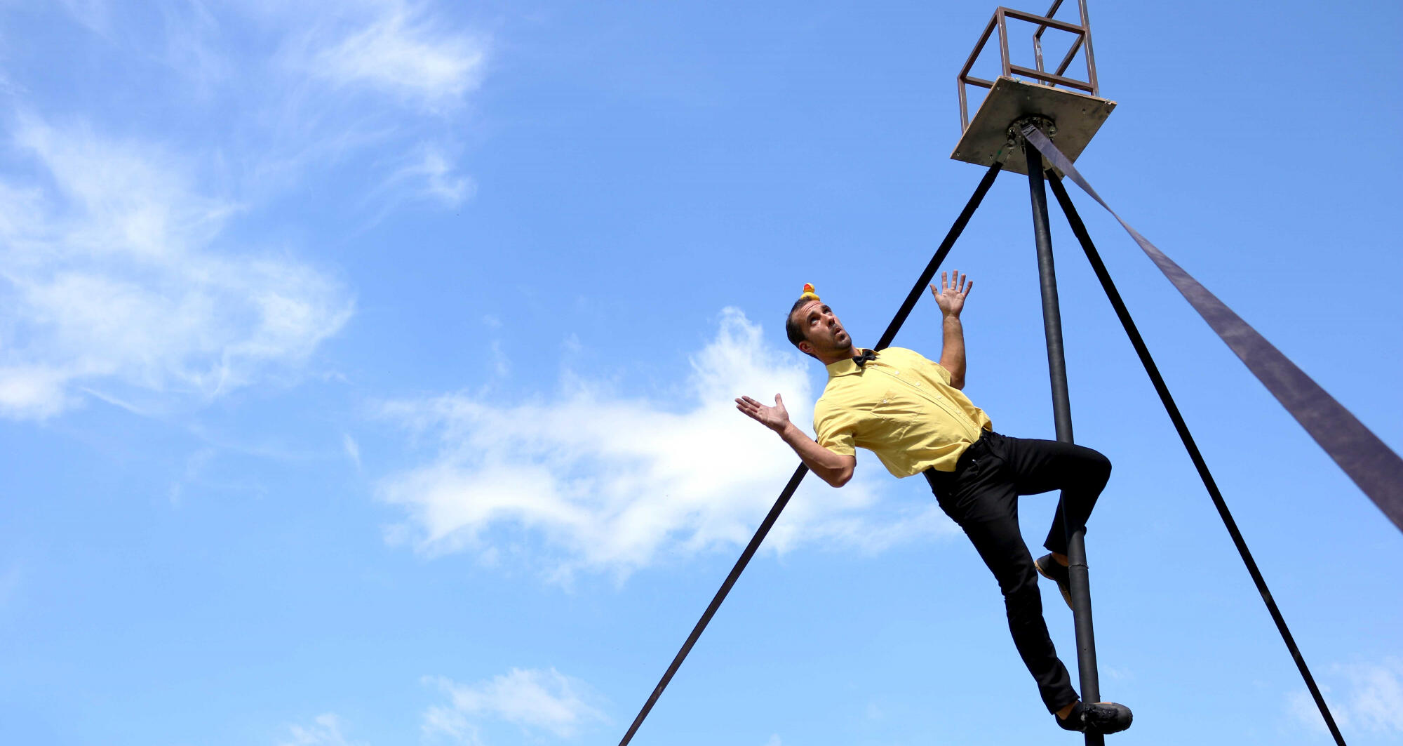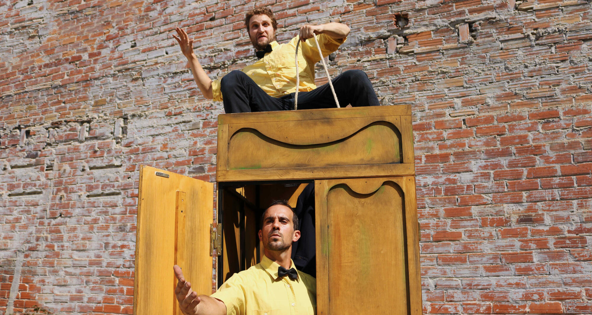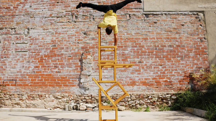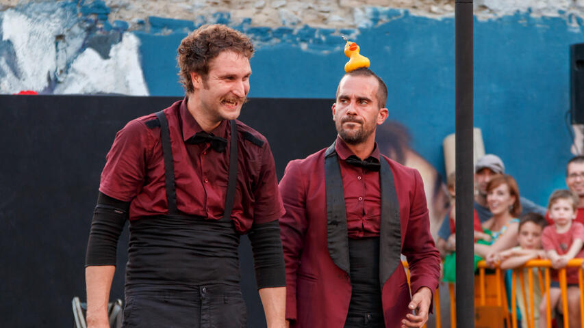 A circus show, powerful and with many disciplines: the Cyr wheel, juggling, Chinese pole, object manipulation, chair balancing and acrobatics. A fresh show in which comedy is always present, in addition to a very pleasant family atmosphere that young and old will enjoy.