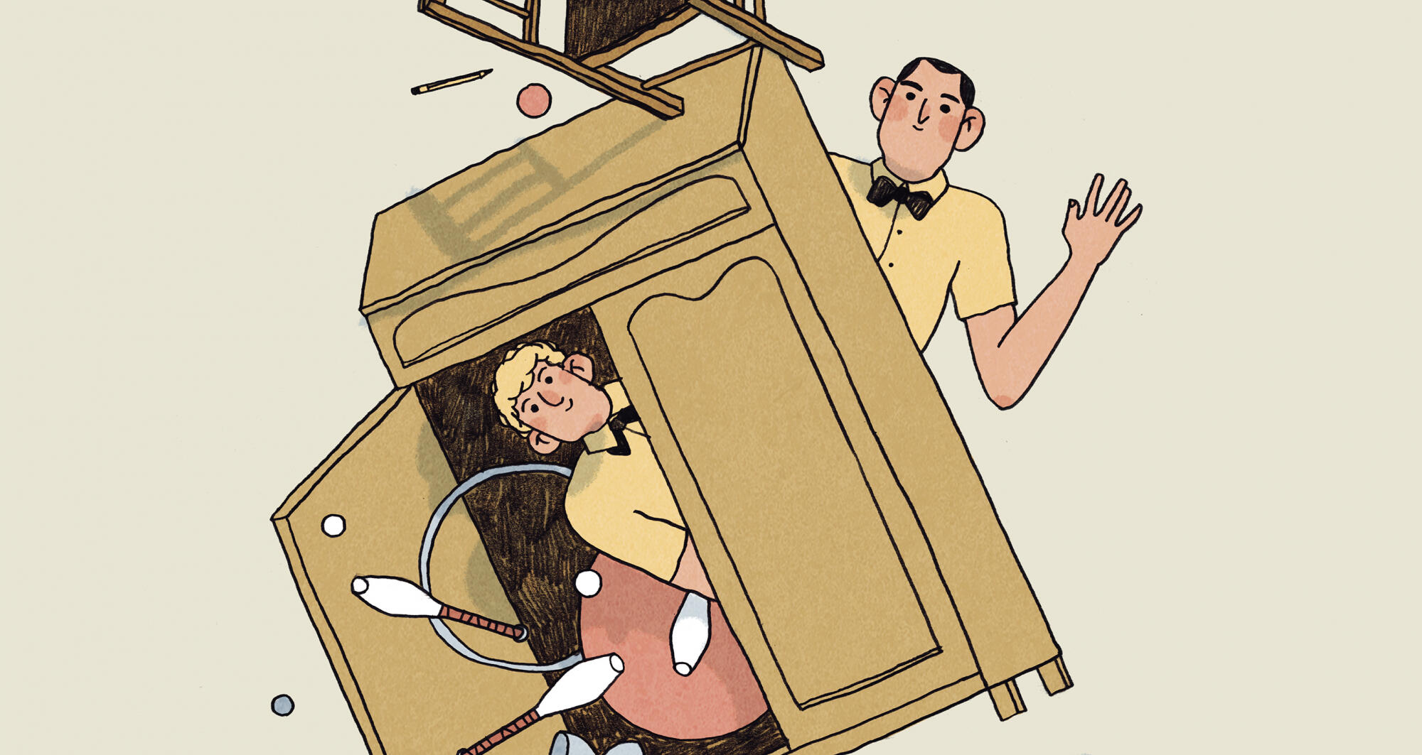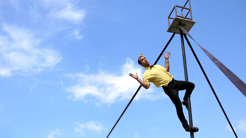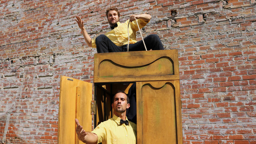 Two humorous circus characters will try to overcome the obstacles they put in front of themselves with everyday actions such as sitting on a chair, hanging up a jacket or painting a picture.