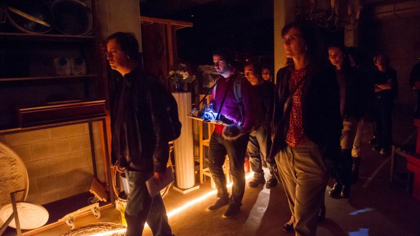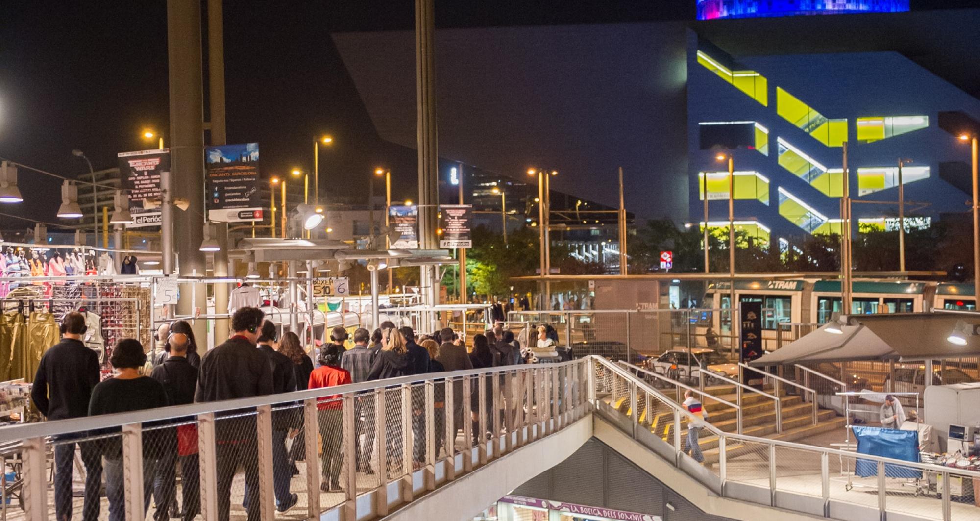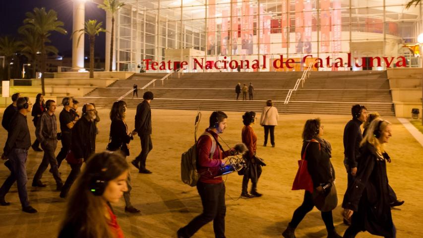 Un paseo interactivo en el festival IF Barcelona dedicado al teatro de objetos. Un mecanismo de intervención escénica por diversos espacios del TNC y del entorno, que a partir de las herramientas del teatro, el cuerpo, el pensamiento y el cine e interviniendo directamente sobre el espacio y la realidad, quiere despertar en el espectador posibilidades de percepción que le hagan mirar, descifrar y comprender la realidad de una manera diferente, alejada de los ritmos del día a día. Este espectáculo surge de la experiencia artística de La Glorieta.